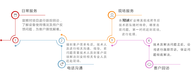 除了制造选金设备之外,冠诚重工还提供工程咨询、选矿试验研究、 选金方案设计、设备制造、安装调试、人员培训、 长期跟踪服务、选厂管理运营等一条龙服务,让客户全程无忧, 缩短工期,提早收益。